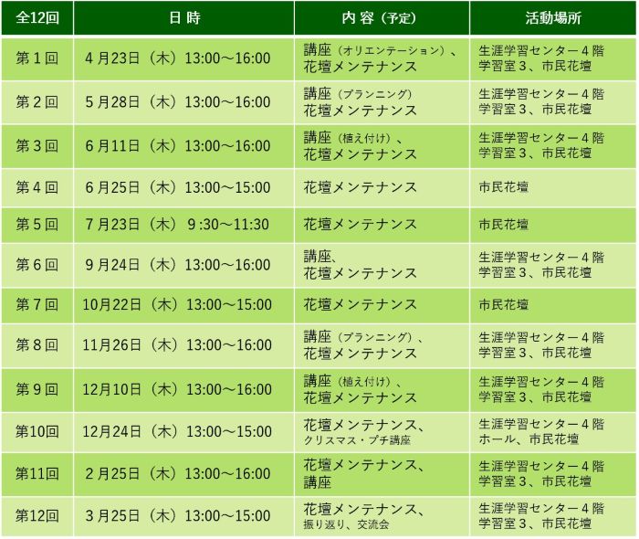 ※花壇サポーターの任期は2年間で、講座も2年間(今回募集の期間は令和10年3月まで)受講できます。