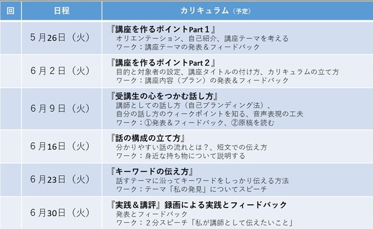 令和8年5月26日、6月2日・9日・16日・23日・30日(火曜日)【全6回】 各回とも14:00~16:00